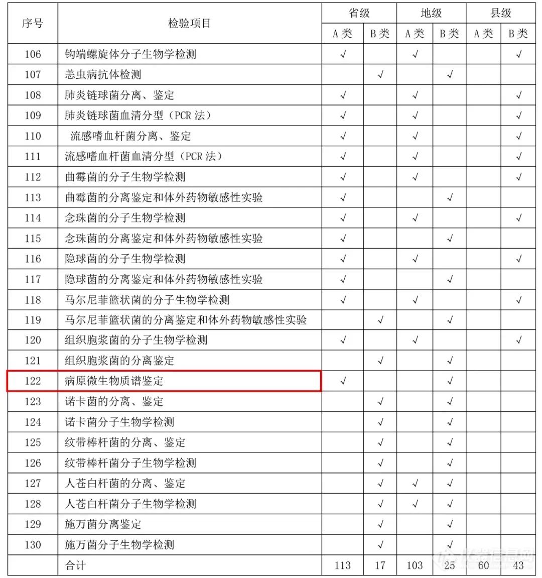 项目,地级可根据实际情况开展病原微生物质谱鉴定项目。